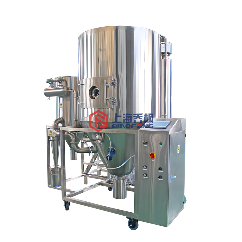 This spray dryer consists of eight systems: feeding system, atomizing system, drying tower, material recovery system, tail gas treatment system, heating system, piping system and control system.