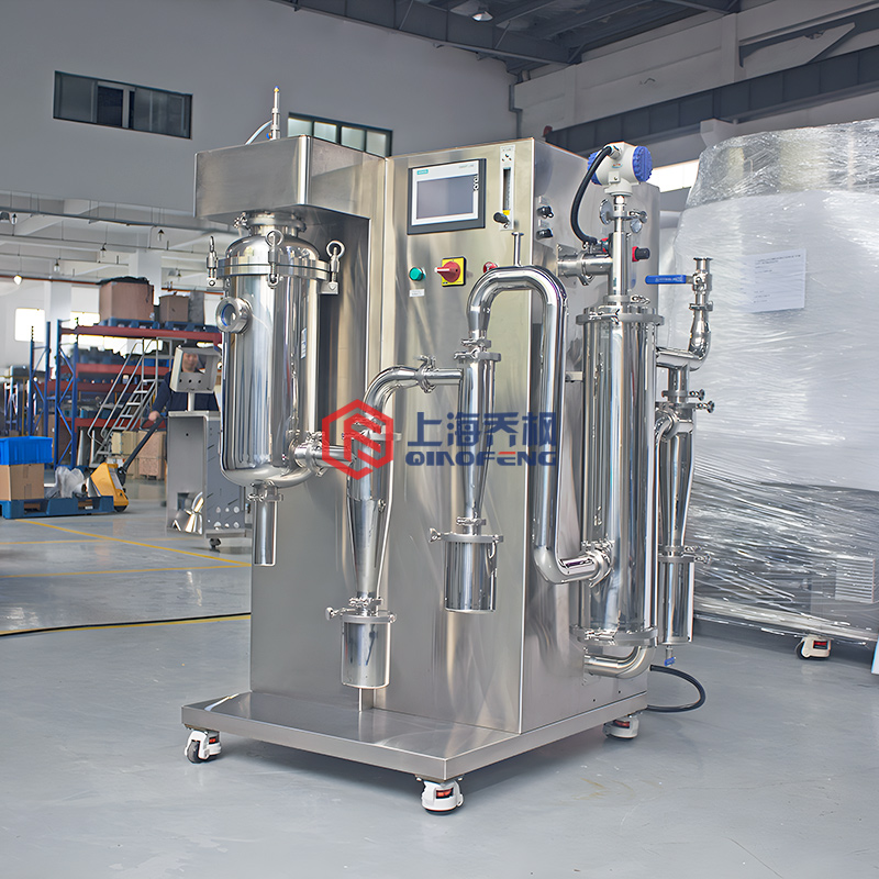 設備主要由:送料系統、加熱系統、霧化系統、噴霧干燥系統、惰性氣體循環系統、產品回收系統、冷凝系統組成。