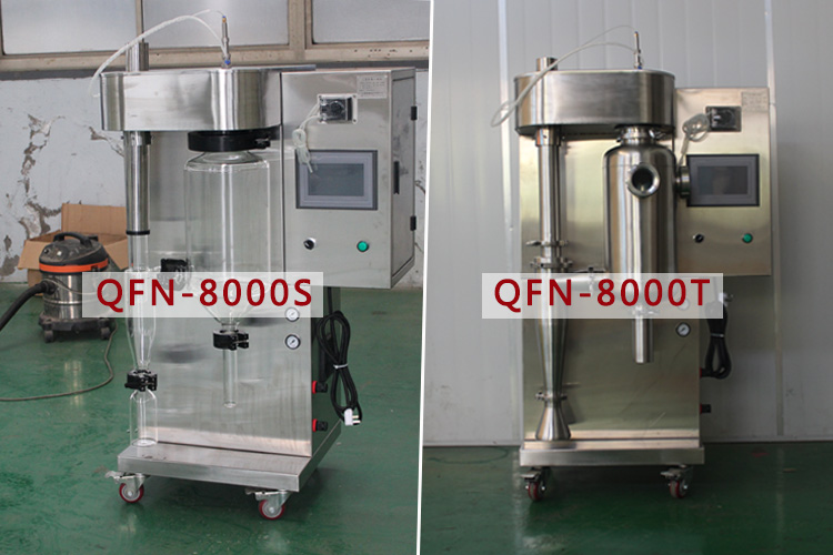 小型噴霧干燥機(jī)是市面上比較常見(jiàn)的一款噴霧干燥機(jī),主要用于科研實(shí)驗(yàn)室或中小企業(yè)前期摸索使用,也廣泛用于高效實(shí)驗(yàn)室等,小型噴霧干燥機(jī)是一款體積較小,帶有腳輪方便移動(dòng)的一款多功能?chē)婌F干燥機(jī),同時(shí)小型噴霧干燥機(jī)分為兩款,一款為QFN-8000S高硼硅玻璃干燥室,另一款為QFN-8000T不銹鋼干燥室,這兩款的區(qū)別就是干燥室材質(zhì)不同,高硼硅玻璃干燥室的話(huà),方便觀察物料在干燥室內(nèi)的霧化狀態(tài)及干燥狀態(tài),而不銹鋼干燥的話(huà),不易損壞,那小型噴霧干燥機(jī)多少錢(qián)呢?下面我們介紹一下。