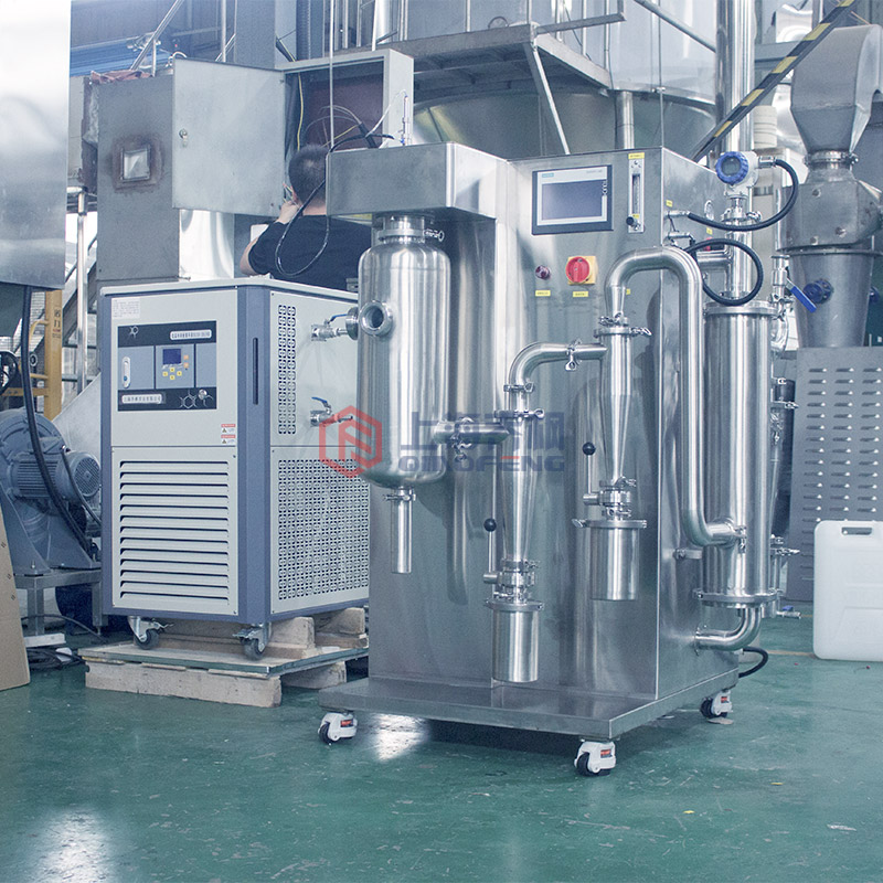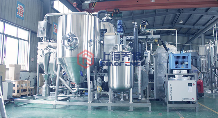 閉式循環(huán)噴霧干燥機(jī)是一種常見的干燥設(shè)備,它的工作原理是將液態(tài)物質(zhì)通過噴嘴噴入干燥室中,并在高溫高壓下蒸發(fā)成為氣體,再將這些氣體通過冷凝器凝結(jié)成為粉末狀物質(zhì)。在整個(gè)過程中,干燥室內(nèi)的氣體是通過循環(huán)系統(tǒng)反復(fù)循環(huán),以達(dá)到提高能源利用率和減少排放的目的。